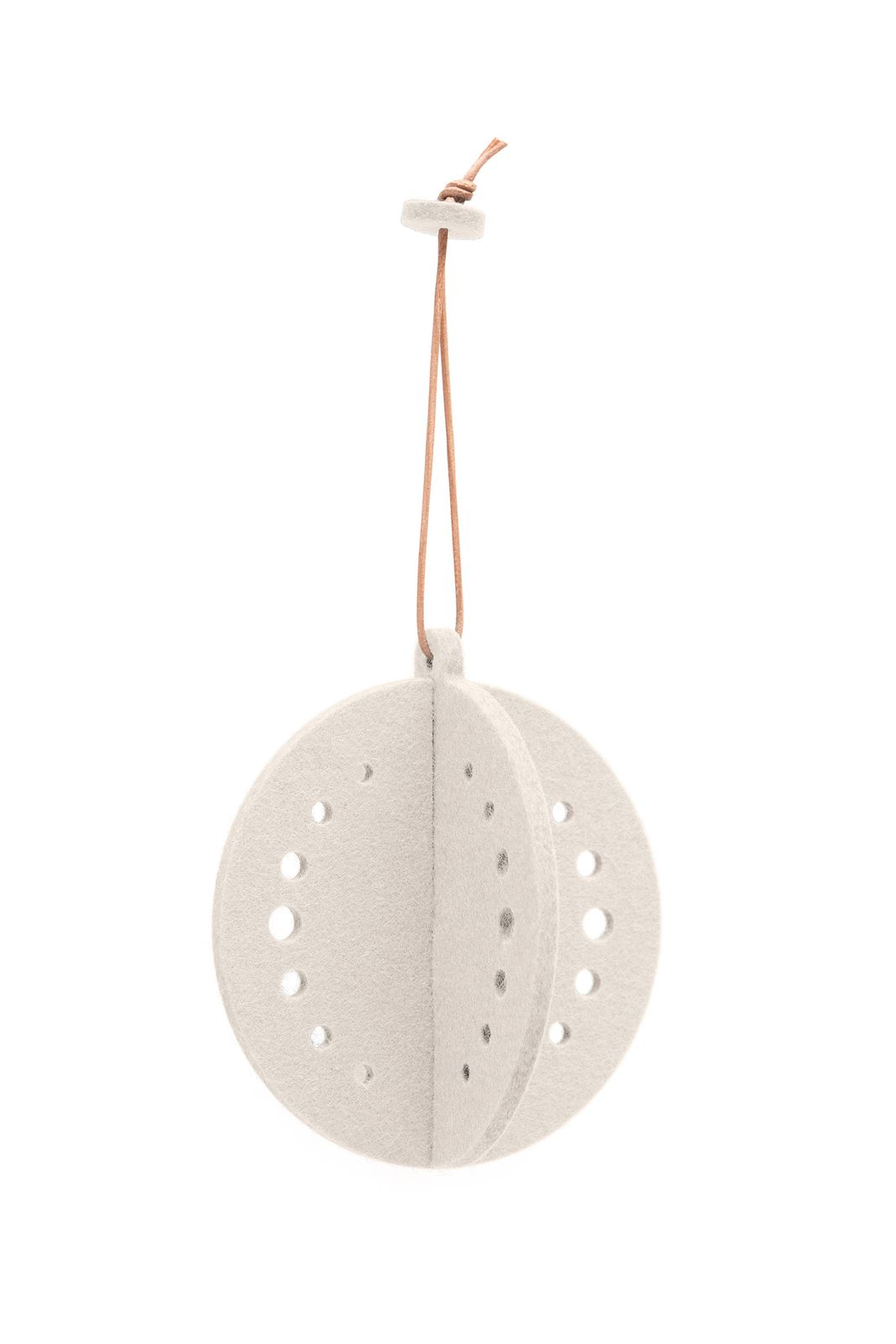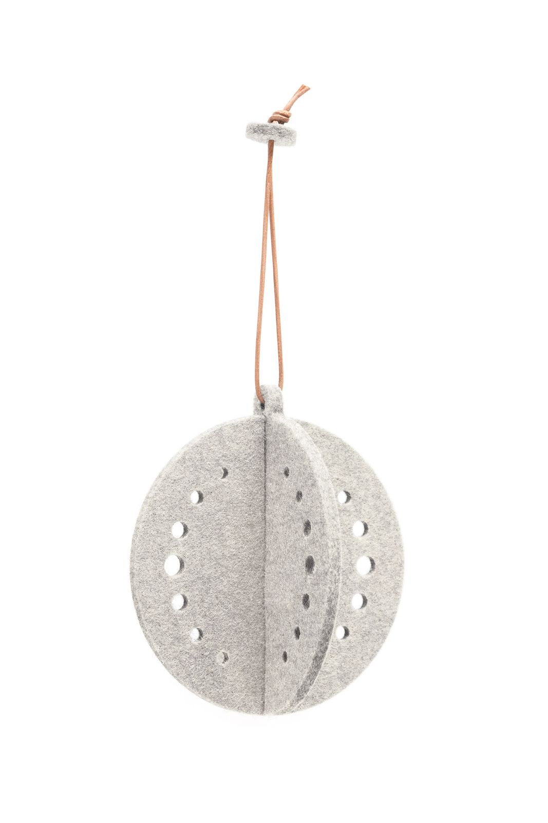 Set aus 4 runden Filzanhängern mit Lochmuster oder Streifenmuster von HEY-SIGN, handgefertigt, nachhaltig und dekorativ. Die 3D-Weihnachtskugeln aus Wollfilz bringen durch ihre Ausstanzungen in Lochmustern das Licht am Tannenbaum zum Funkeln und durch die Steckfunktion lassen sie sich flachliegend verstauen und warten nur darauf im nächsten Jahr wieder in voller Größe weihnachtlichen Zauber zu verbreiten.