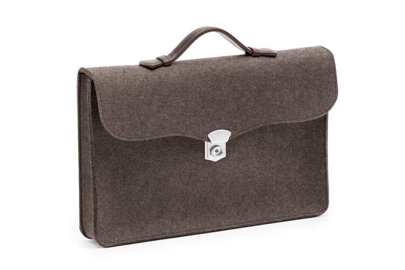 Der geschmeidige Filz und die weiche Form erzeugen eine besonders angenehm zu tragende Businesstasche von HEY-SIGN. Aufwendige Details, wie die Metallschließe und der Tragegriff aus echtem Leder tragen zur Raffinesse dieser Aktentasche bei, gefertigt aus Wollfilz eignet sie sich sowohl für das Office als auch für den Alltag.