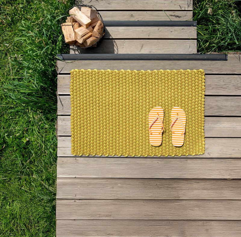 - Die hochwertige Matte ist handgestrickt und ihre besondere Textur und Robustheit macht sie zu einem langlebigen Begleiter im Alltag