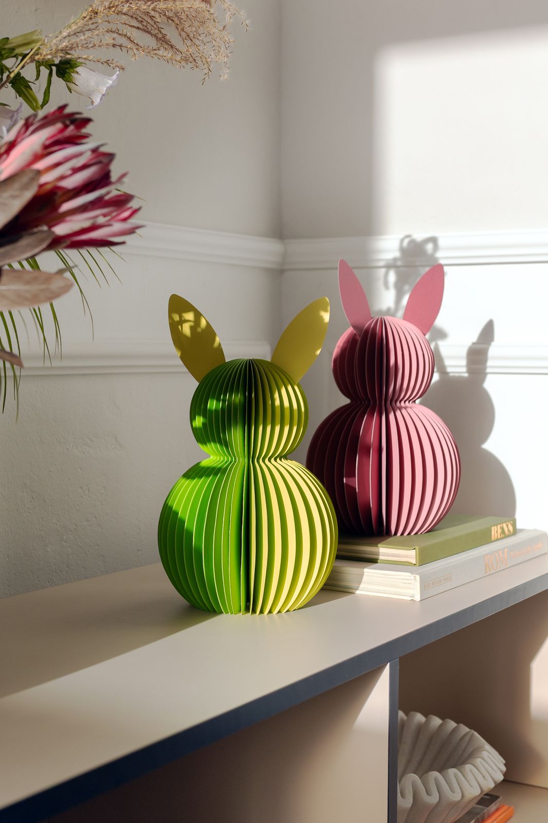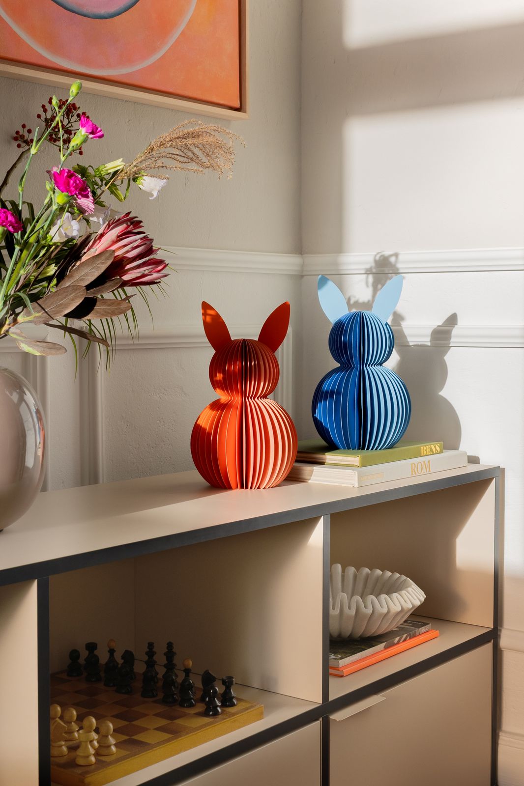 Seit der Gründung stehen für die Firma Remember Farben und Formen im Vordergrund. In dem ausgefallenen außergewöhnlich und originellem Sortiment finden Sie Geschenkartikel für den Wohnbereich, Tisch + Küche, Büro, für die Reise, Spiele für Groß und Klein sowie modische Accessoires. Hopp, hopp aufgefaltet - fertig ist die Osterhasendekoration von Remember. Das zweifarbige Osterhasen Pärchen ist ein richtiger Hingucker. Die Papierhasen sind 30 cm groß. Dank der integrierten Magnete sind die Hasen in Nu aufgefaltet und nach den Feiertagen genauso schnell wieder platzsparend verstaut.
