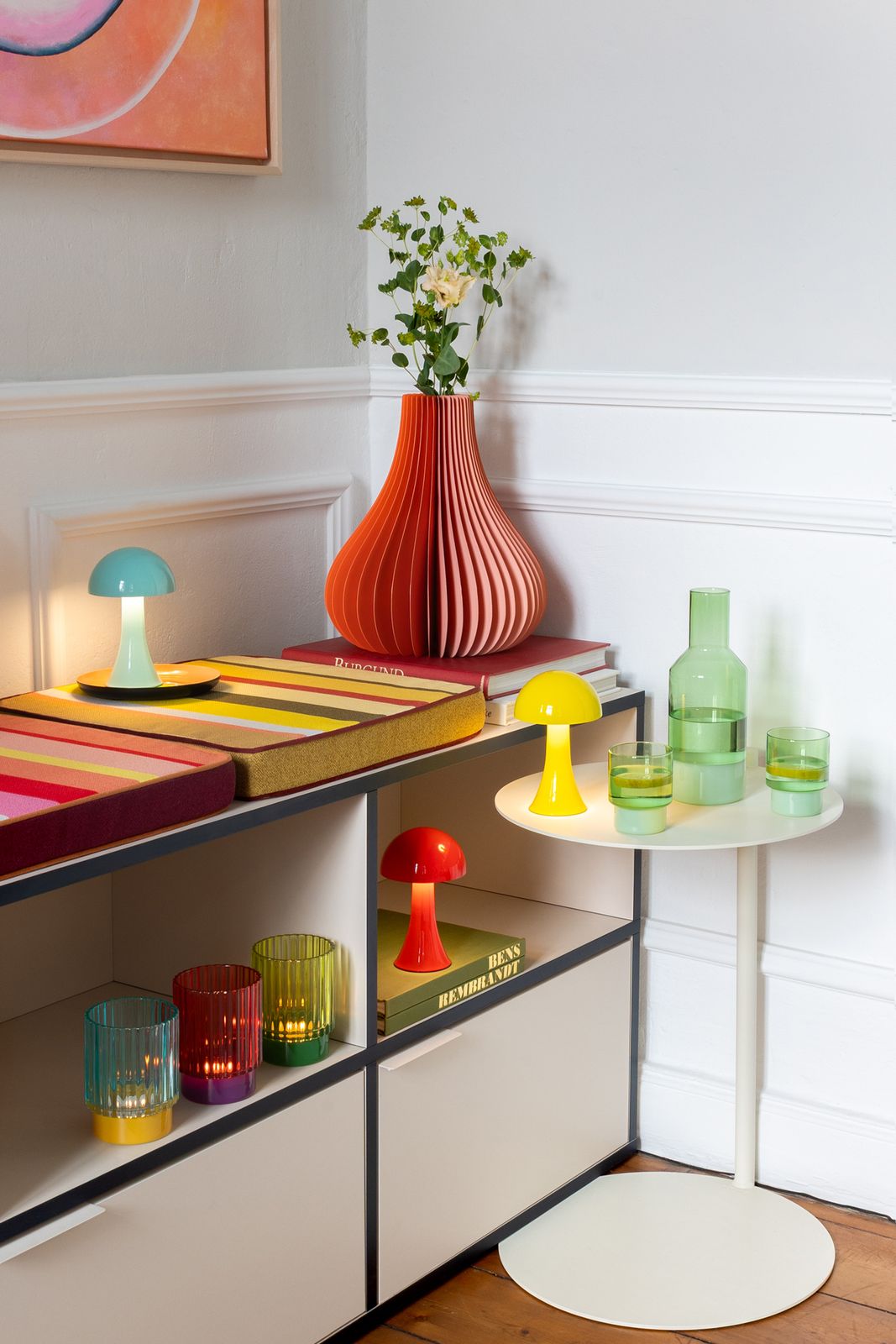 - zweifarbige Vase mit Glaszylinder