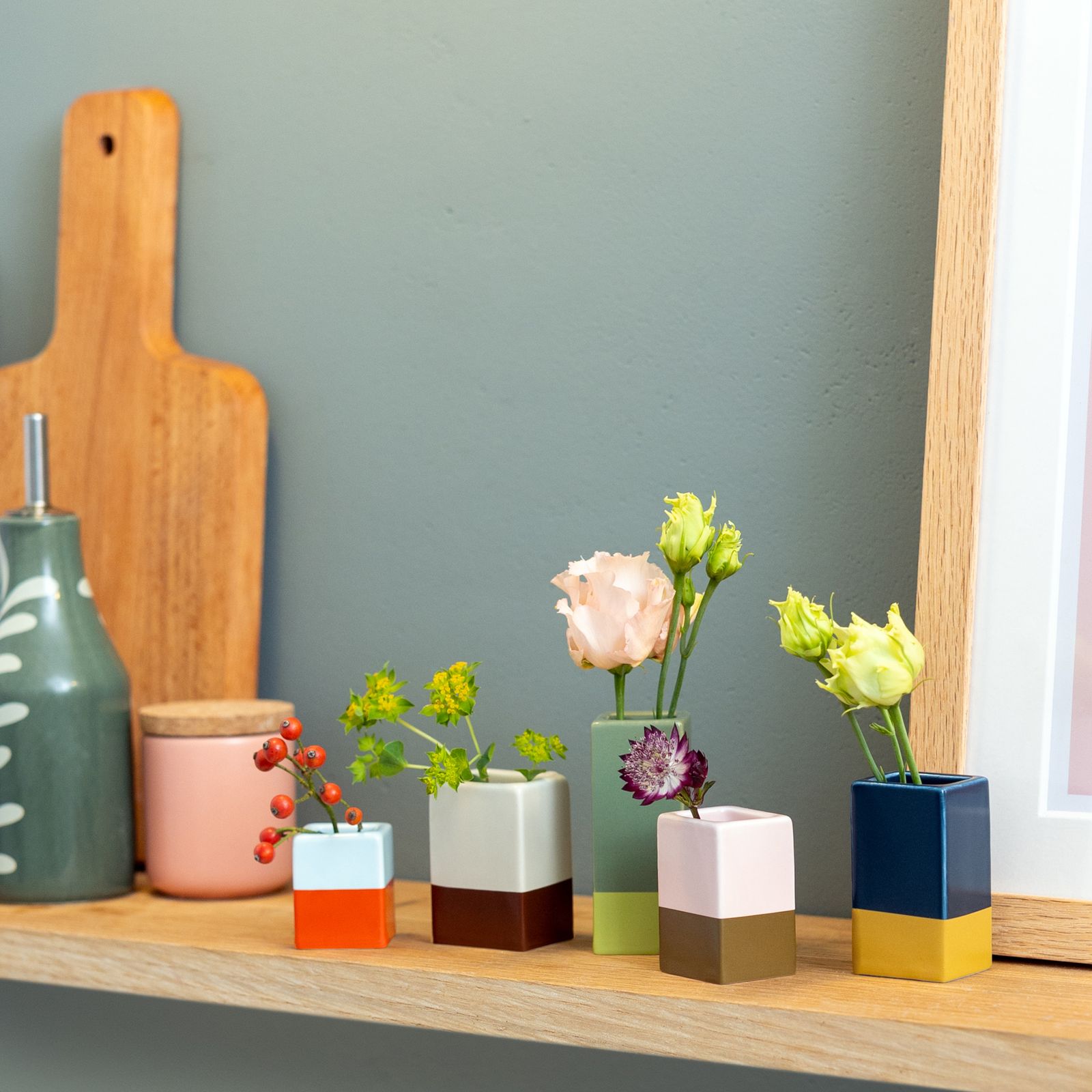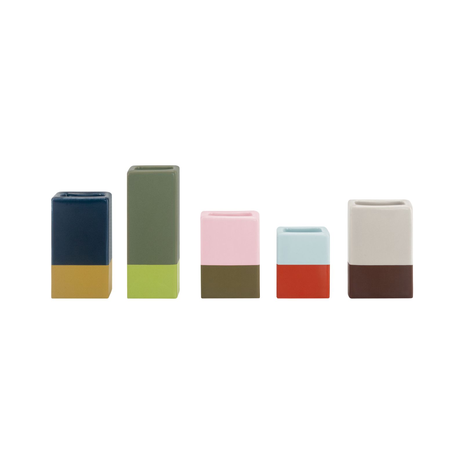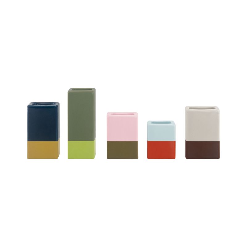 - 5 farbigen, puristischen Mini Vasen aus Porzellan